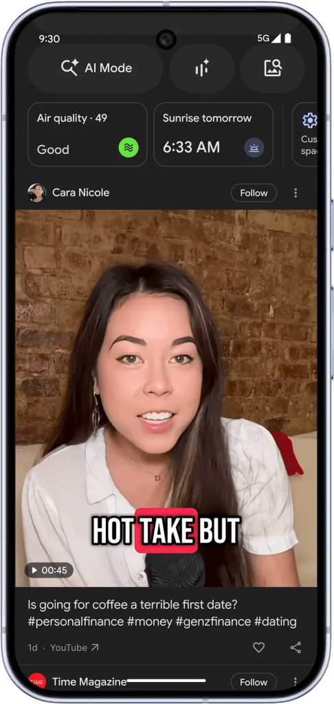 Dans les semaines à venir, vous découvrirez davantage de contenus dans Discover, provenant d’éditeurs et de créateurs du web, comme des publications de X, d’Instagram et de YouTube Shorts, et d’autres plateformes suivront.
