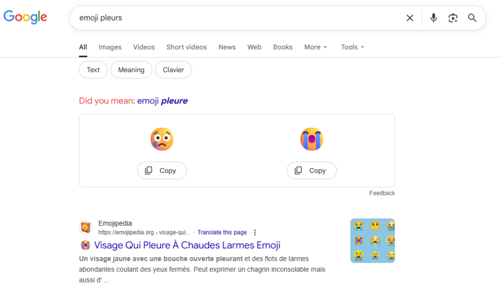 C’était en test il y’a quelques mois, c’est maintenant Live pour tous les comptes : si vous tapez une requête pour trouver un emoji sur Google, il y’a une nouvelle answer box qui répond directement à votre question.