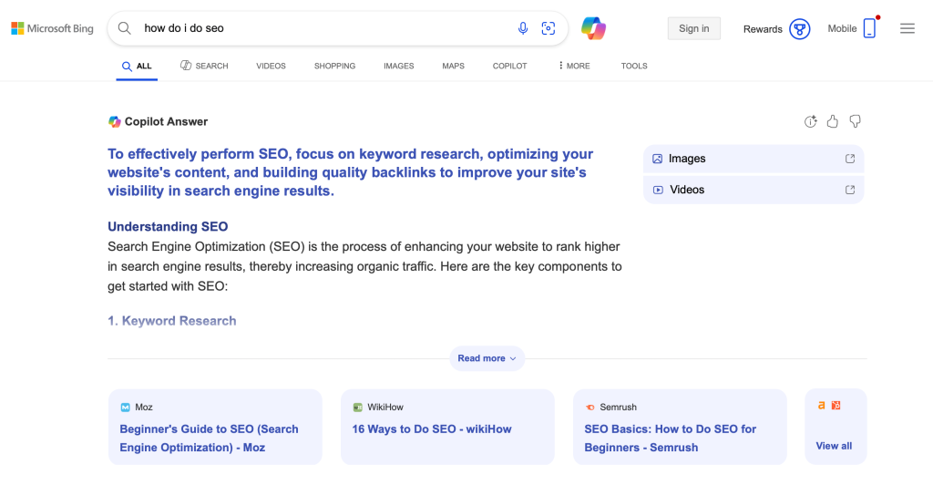Parmi ces moteurs, il y’a aussi Bing de Microsoft qui propose lui aussi des réponses générées par IA :