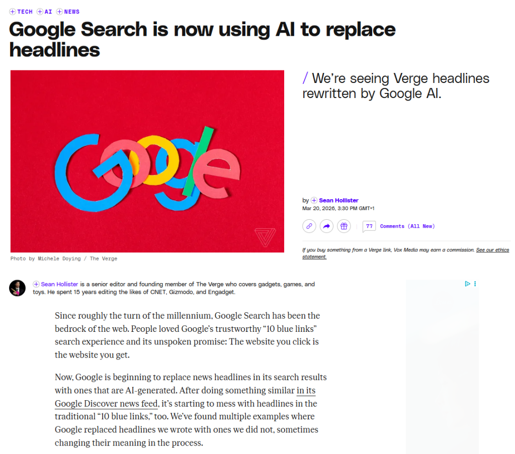 - Google Is Testing AI-Generated Headline Rewrites in Search Results – ALM Corp, mars 2026