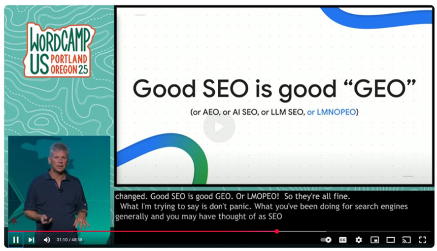 Danny Sullivan, le porte-parole de Google Search, l’a résumé lors du WordCamp US en septembre 2025 : « Good SEO is good GEO. » Quel que soit l’acronyme que vous choisissiez, GEO, AEO, LLMO, AI SEO, les bonnes pratiques restent les mêmes. Gary Illyes, son collègue, a été encore plus direct : utilisez les pratiques SEO normales, vous n’avez besoin ni du GEO, ni du LLMO, ni de quoi que ce soit d’autre. Quand les deux voix les plus écoutées de Google Search vous disent que le GEO est du SEO avec un chapeau, il serait temps de les écouter.